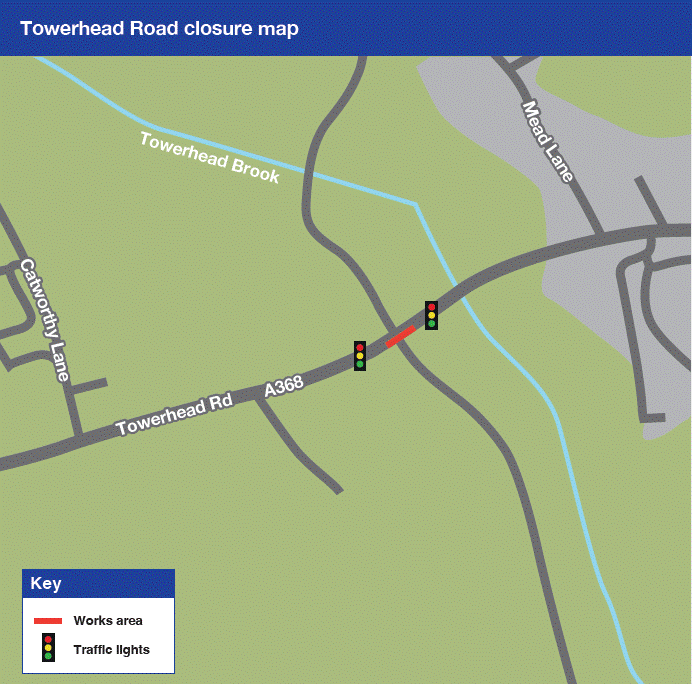 Towerhead Road traffic management works map |